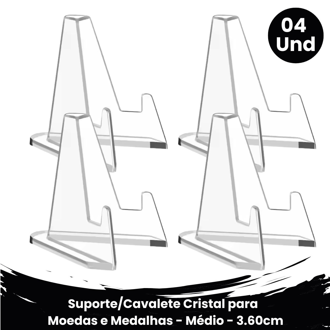 04 Suportes/Cavalete para Moedas e Medalhas - Cristal - Médio / 3.60cm