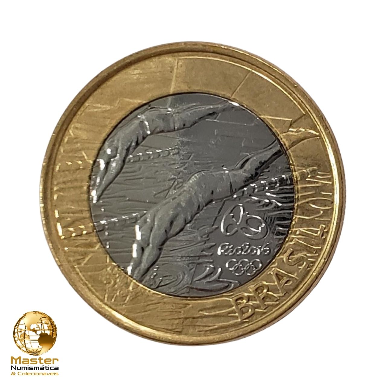 Moeda 1 Real 2014 Natação - V-608 - Olimpiadas Rio 2016 - Flor de Cunho