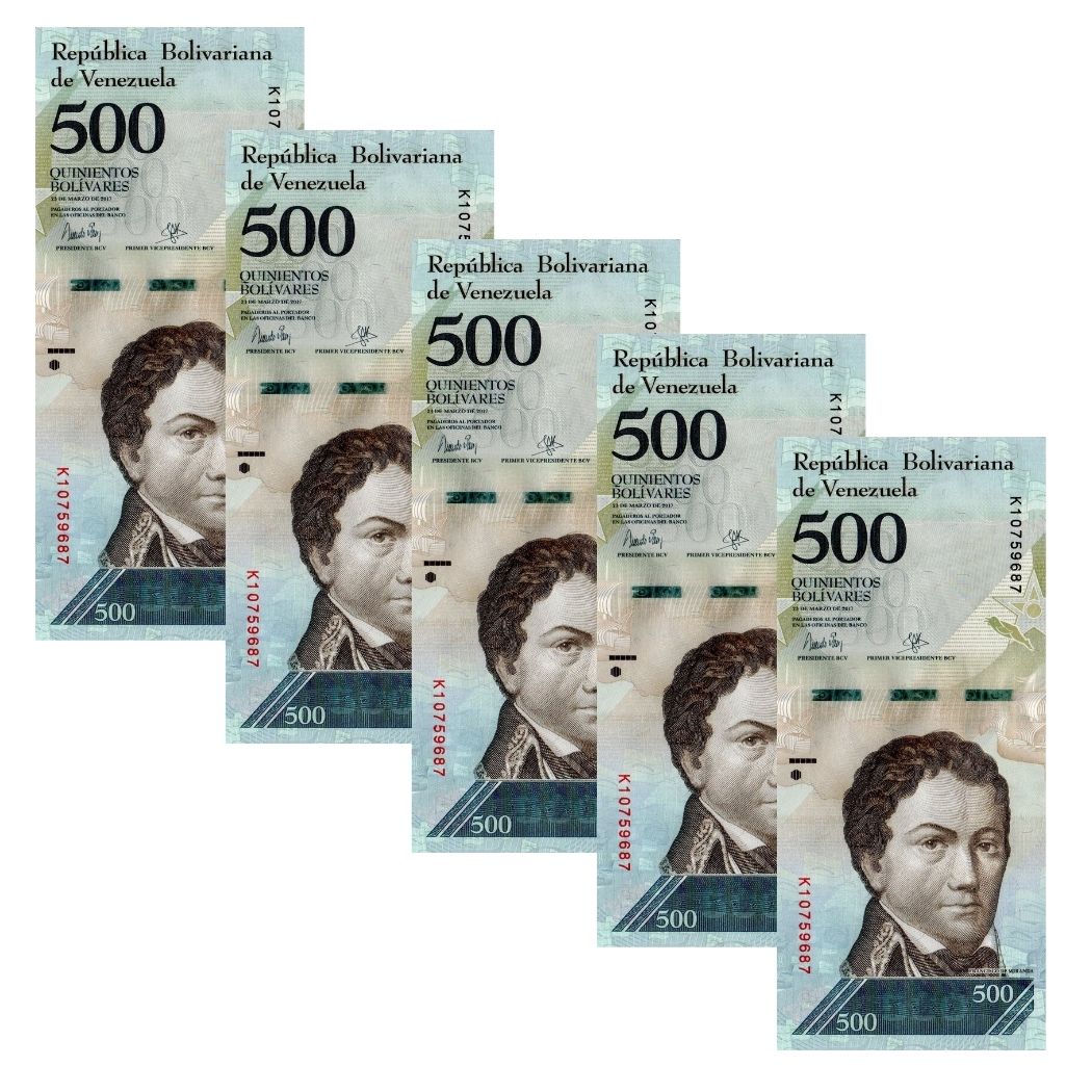 Venezuela - 5 Cédulas de 500 Bolivares Forte 2017 - P-94b - Francisco de Miranda - Sequência - FE