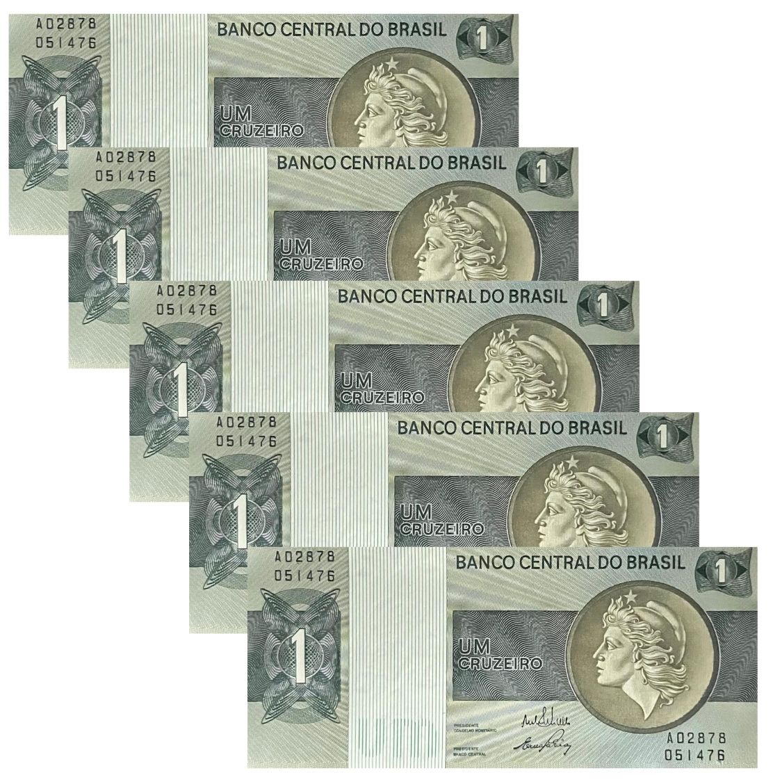 Brasil - 5 Cédulas de 1 Cruzeiro 1970 C-129 - A02878 - Efigie - Sequência - FE - Delfin Netto/Ernani Galveas