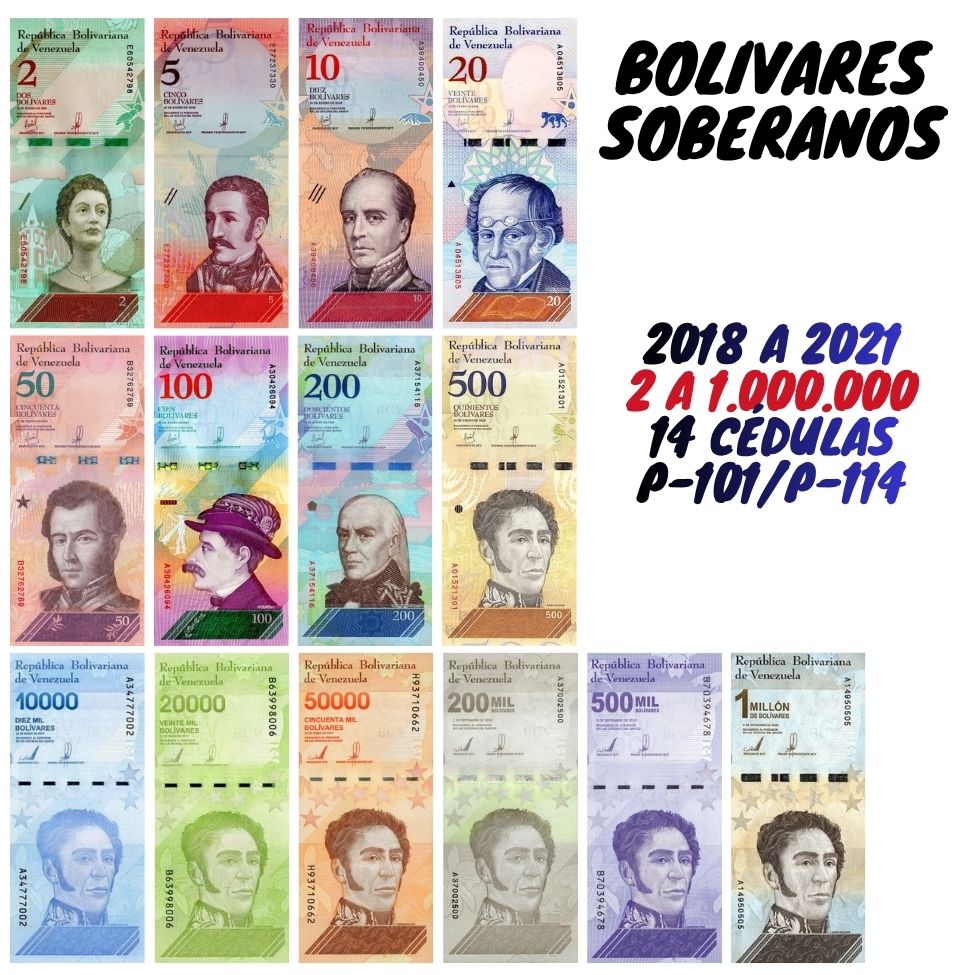Venezuela - Set com 14 Cédulas - 2 a 1 Milhão de Bolivares Soberanos - Flor de Estampa - P-101 a P-114 - Flor de Estampa