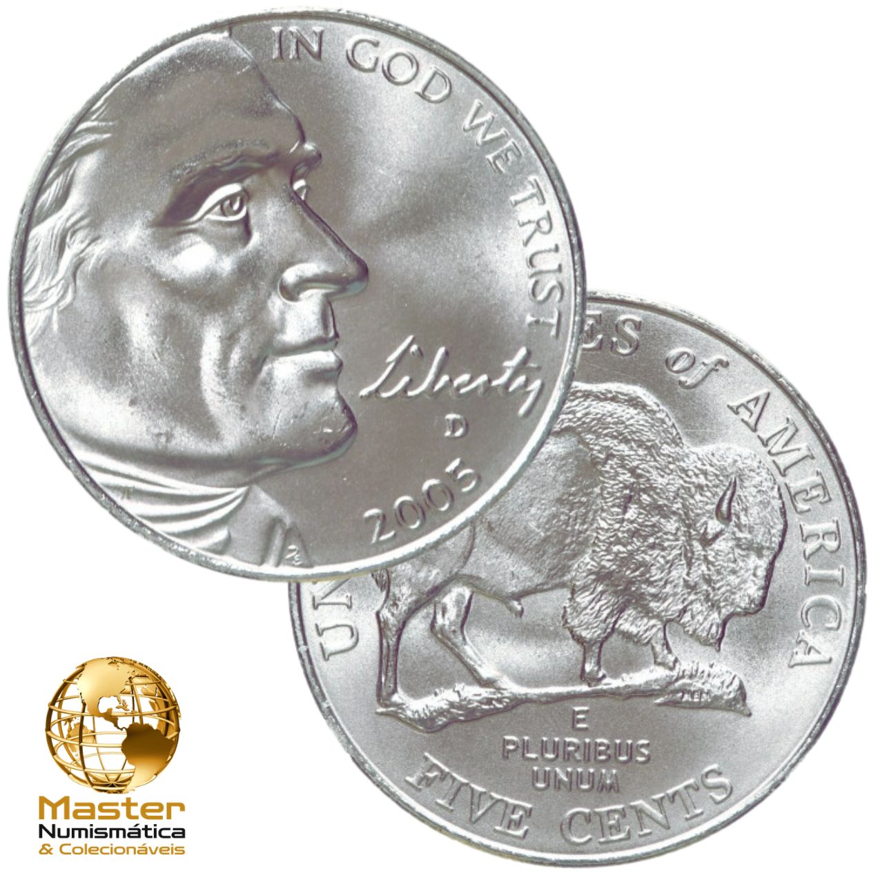 Estados Unidos - Moeda de Five Cents 2005 D - Bisão - KM# 368 - Jefferson Nickel / Bicentenário da expedição de Lewis e Clark - Flor de Cunho