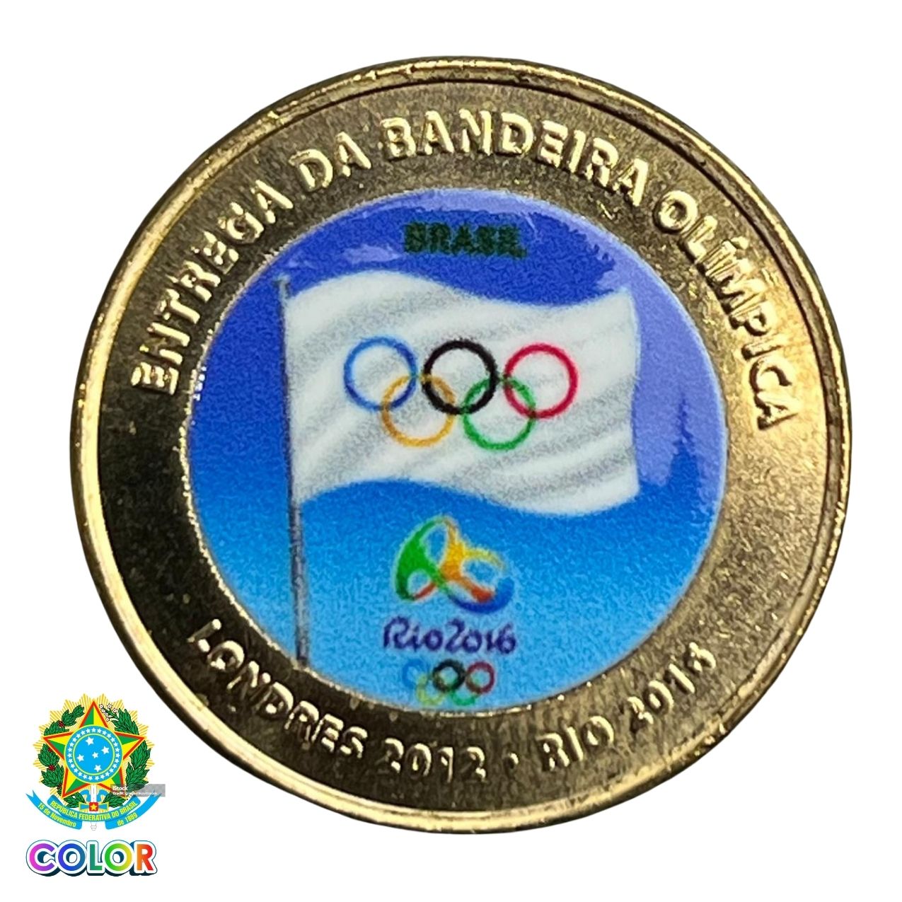 Colorida - Moeda de 1 Real 2012 - Bandeira Olimpica V-600 - Colorizada - Flor de Cunho