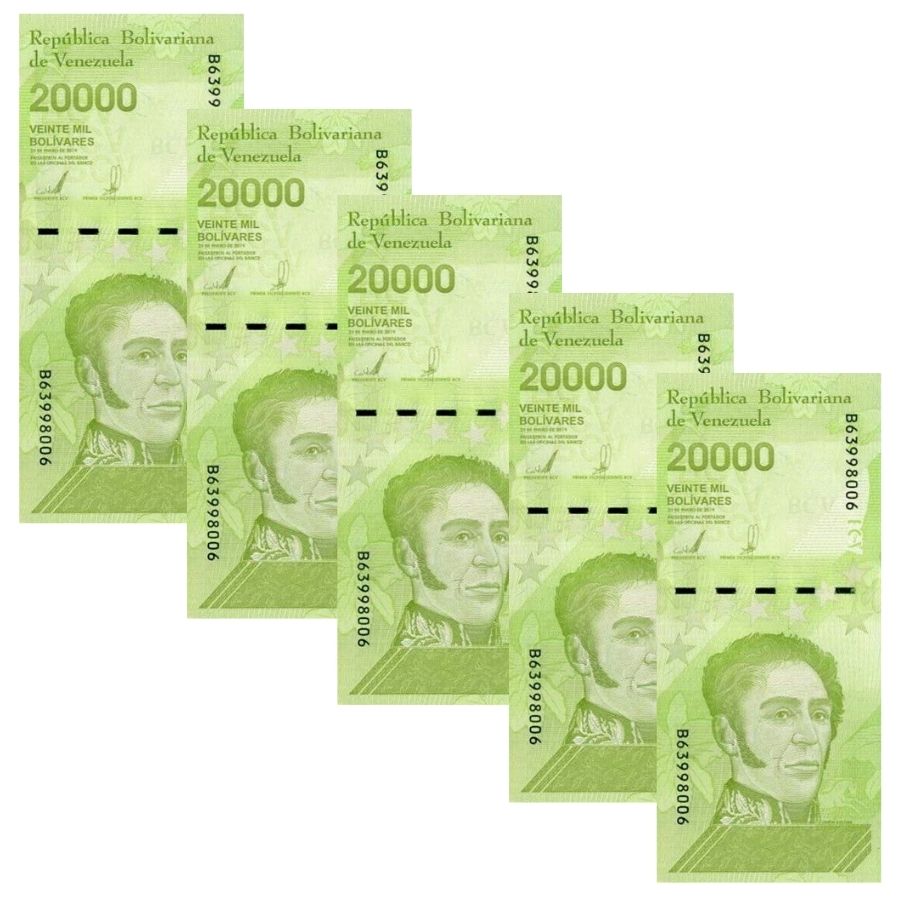 Venezuela - 5 Cédulas de 20.000 Bolivares Soberanos 2019 - P-110b - Simon Bolivar - FE