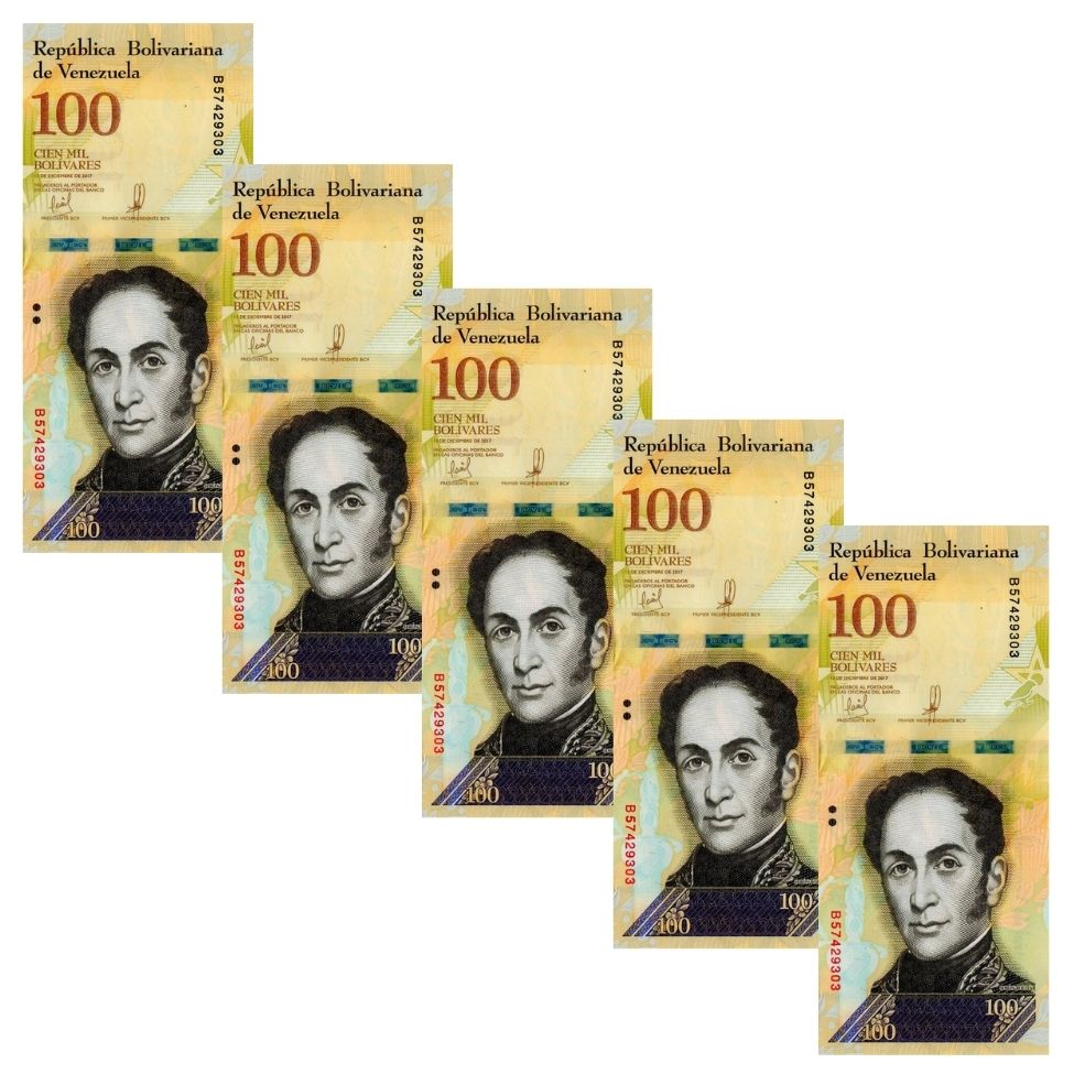 Venezuela - 5 Cédulas de 100 Mil Bolivares Forte 2017 - P-100b - Simon Bolivar - FE