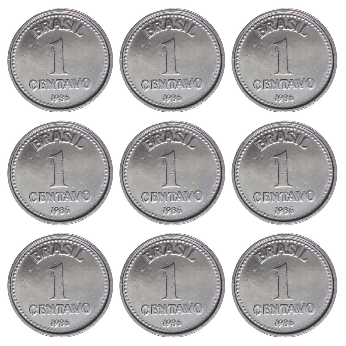 Promoção - 9 Moedas de 1 Centavo 1986 - V-380 - Aço Inox - Flor de Cunho