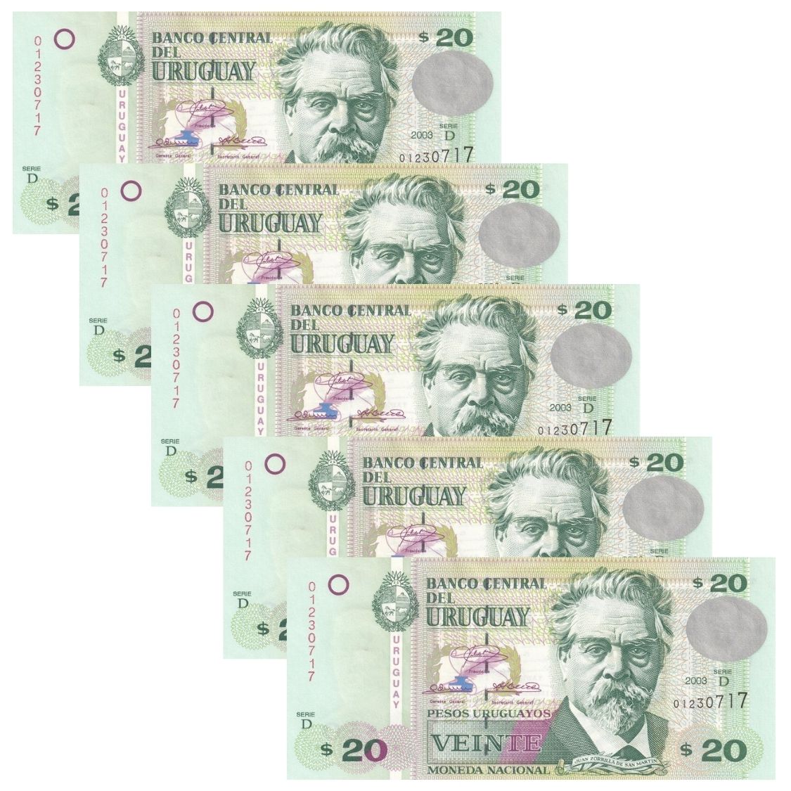 Uruguai - 5 Cédulas de 20 Pesos 2013 - P-83a - FE