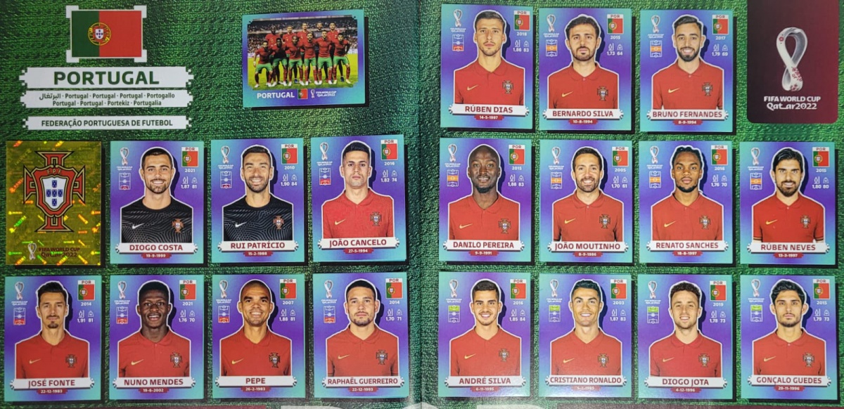 Seleção de Portugal Completa - POR1 a POR20 - 20 Figurinhas - Grupo H - Copa do Qatar 2022 - Original Panini