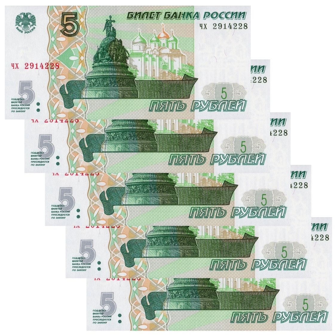 Promoção - Russia - 5 Cédulas de 5 Rublos 2022 - P-267a - Sequência - FE