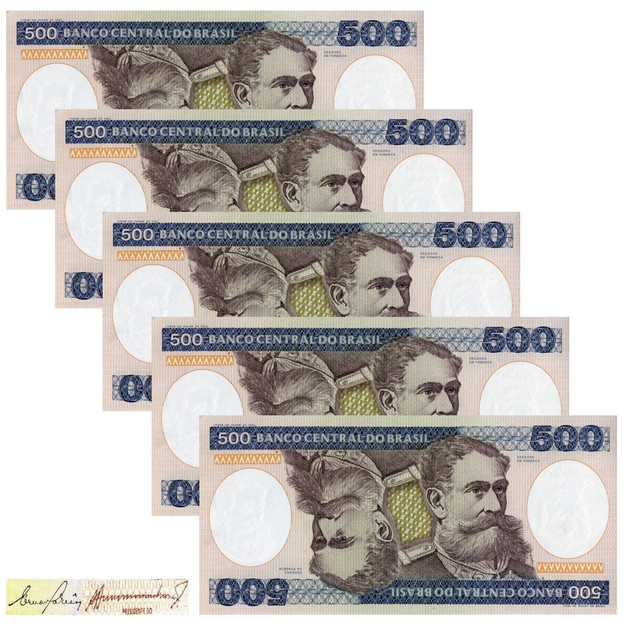 Brasil - 5 Cédulas de 500 Cruzeiros 1985 - Deodoro da Fonseca - C-161 - Sequência - Série 4195 - Flor de Estampa