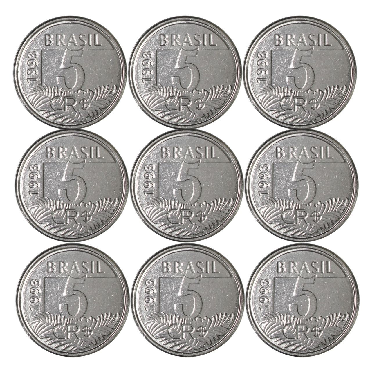 Promoção - 09 Moedas de 5 Cruzeiros Reais 1993 Arara - V-430 - Sob/FC