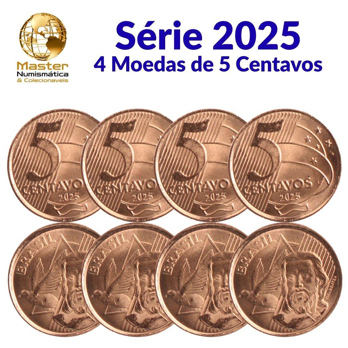 Lançamento - Kit com 4 Moedas de 5 Centavos 2025 - Flor de Cunho