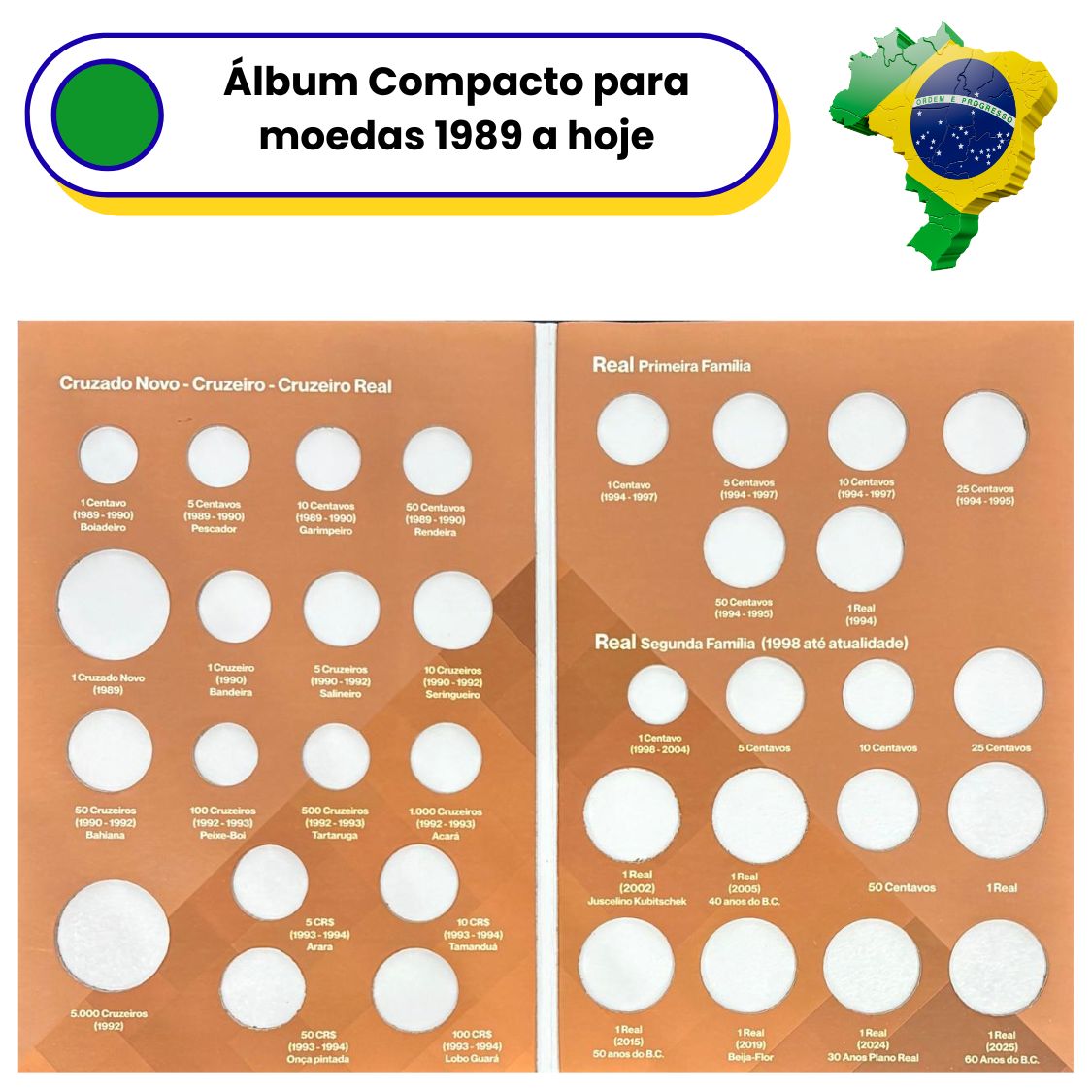 Álbum Vazio para as Moedas do Cruzado Novo ao Real 1989 a hoje - Por tipo