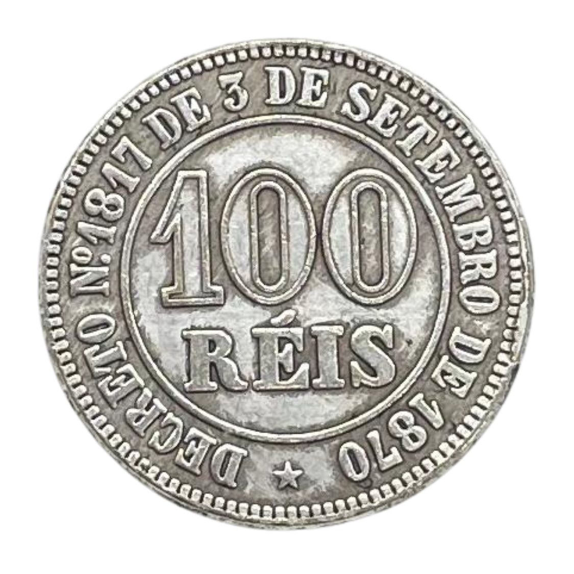 Réplica da Rarissima Moeda de 100 Réis 1872 - FC - Excelente cunhagem, 9.1gr - 25.5mm - Ferro/Inox - Moeda com excelente cunhagem. Por favor observar que estamos escrevendo claramente que é uma Cópia, pois esta Moeda só teve emissão de 100 Unidades.
