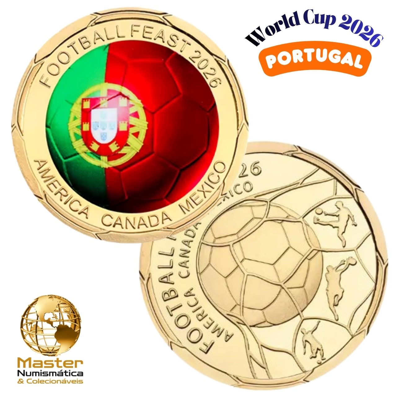Lançamento - Moeda Colorida Copa do Mundo 2026 - Portugal - 40.0mm - Flor de Cunho - Na cápsula
