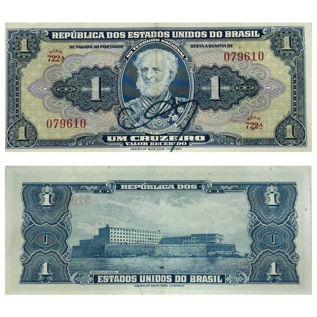 Brasil - Cédula de 1 Cruzeiro 1944 Autografada C-009 - Série 722 - MBC+ - Cédulas tem dobra central, pouco ou nunca circuladas e estão em sequências