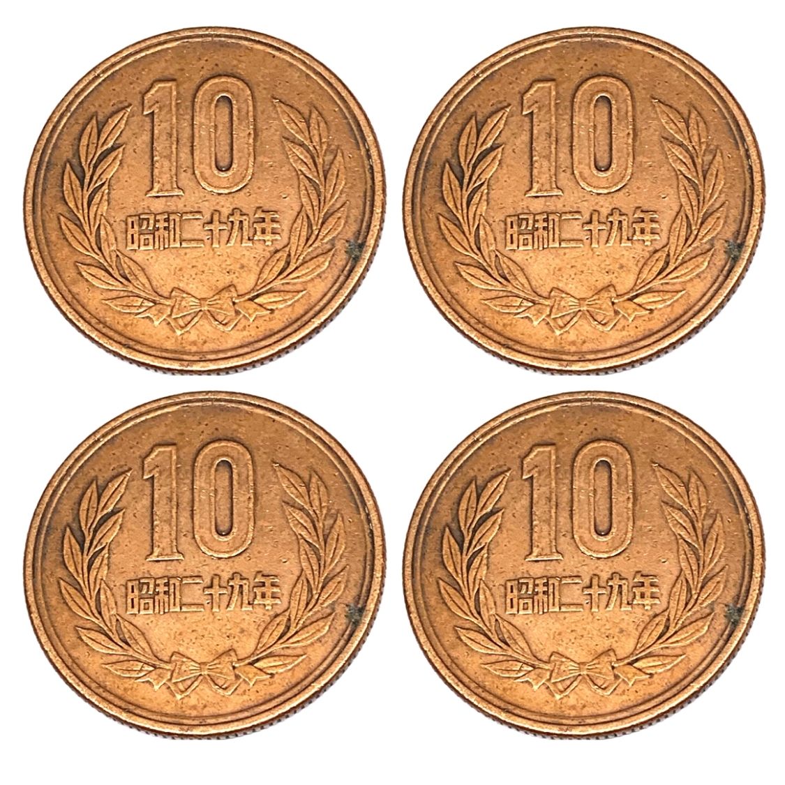 Japão - Lote com 4 Moedas de 10 Ienes - ND - Bronze - 23.5mm - 4.5g - Circuladas