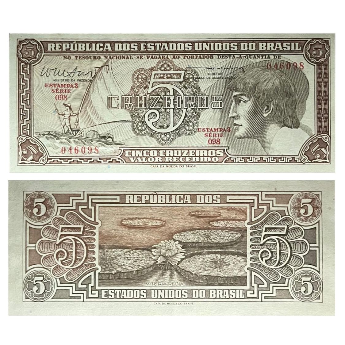 Brasil - Cédula de 5 Cruzeiros 1962 C-112 - Série 098 - 3ª Estampa - Indio - FE - Reginaldo Nunes/Walter Salles