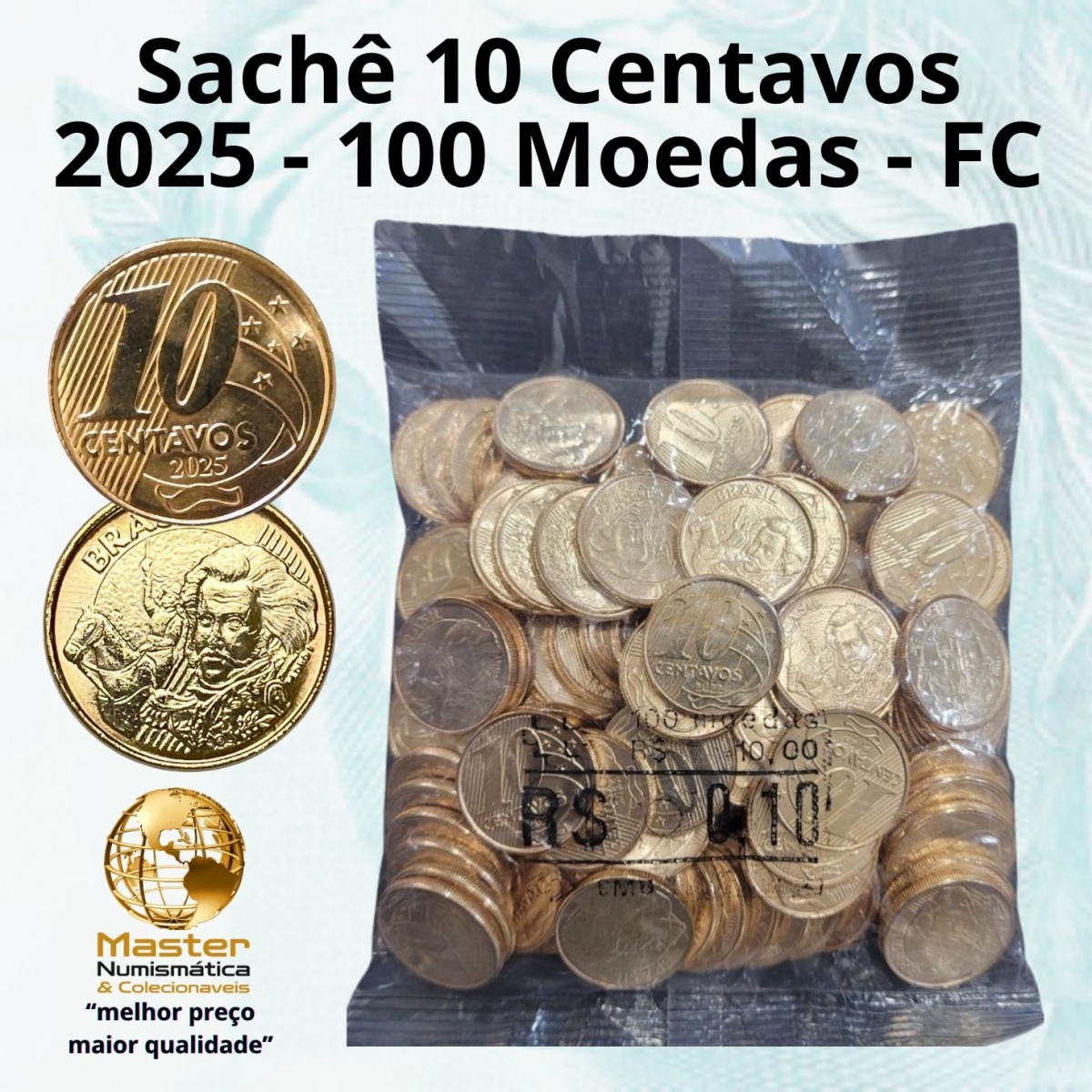 Lançamento - Sachê Lacrado 10 Centavos 2025 - V-518 - 100 Moedas FC