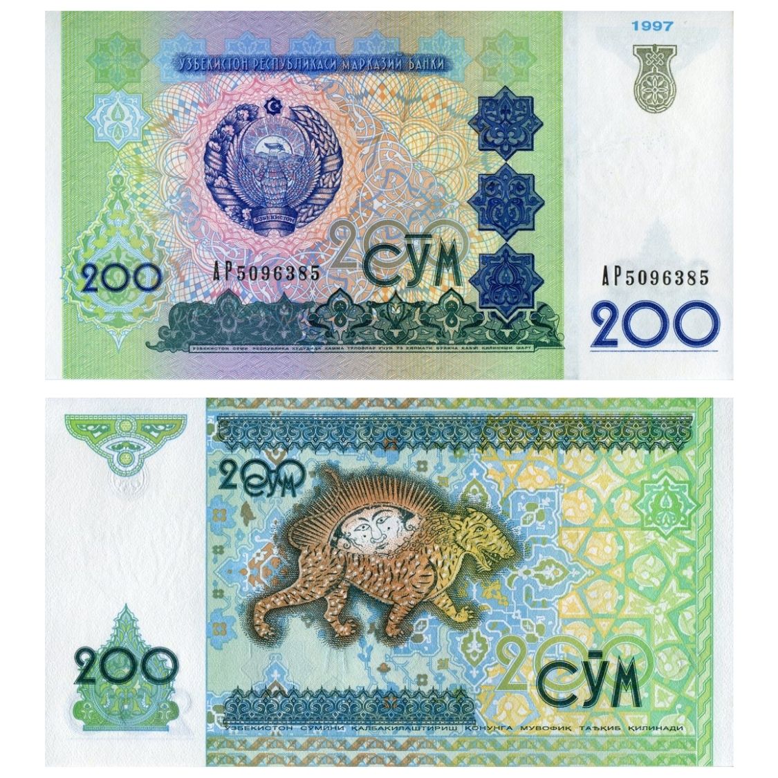 Uzbequistão - Cédula de 200 Som 1997 - P-80a - Flor de Estampa