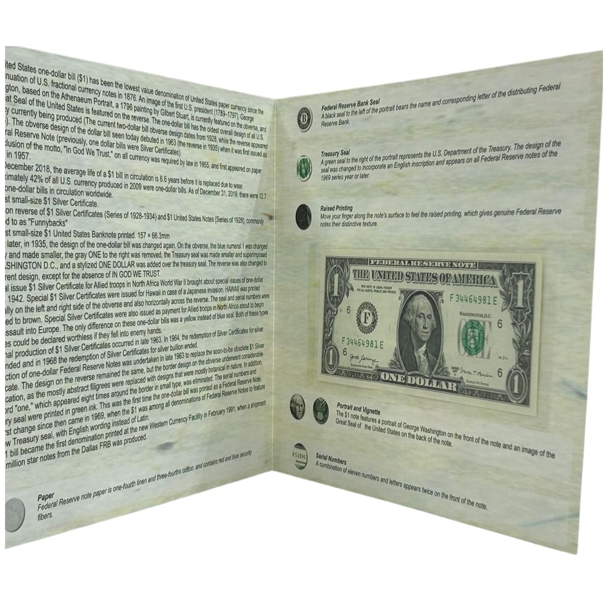 Estados Unidos - Folder com a Cédula de 1 Dollar 2017 - P-544bF - Letra F (Atlanta) - FE