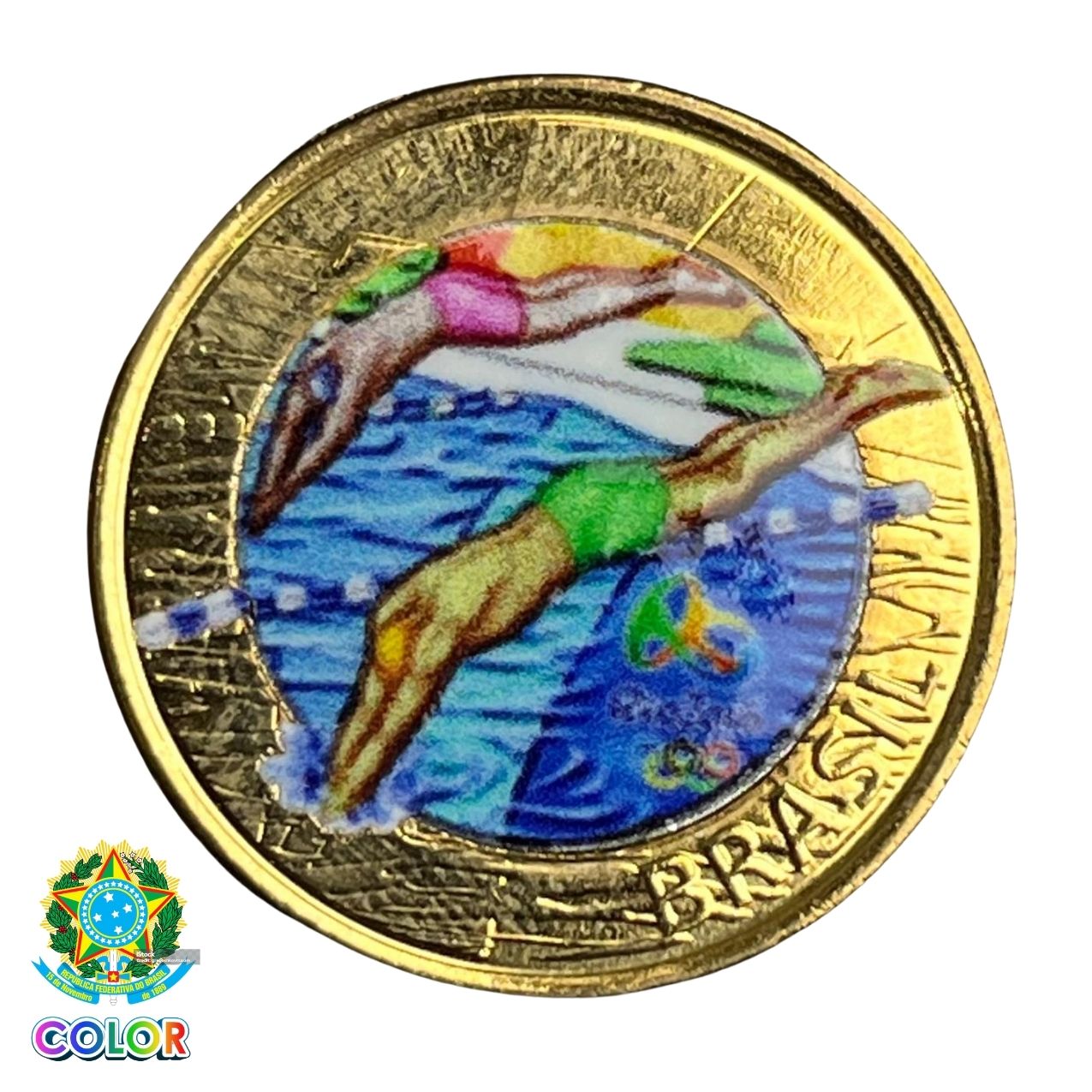 Colorida - Moeda 1 Real 2014 - Natação - V-608 - Colorizada - Flor de Cunho