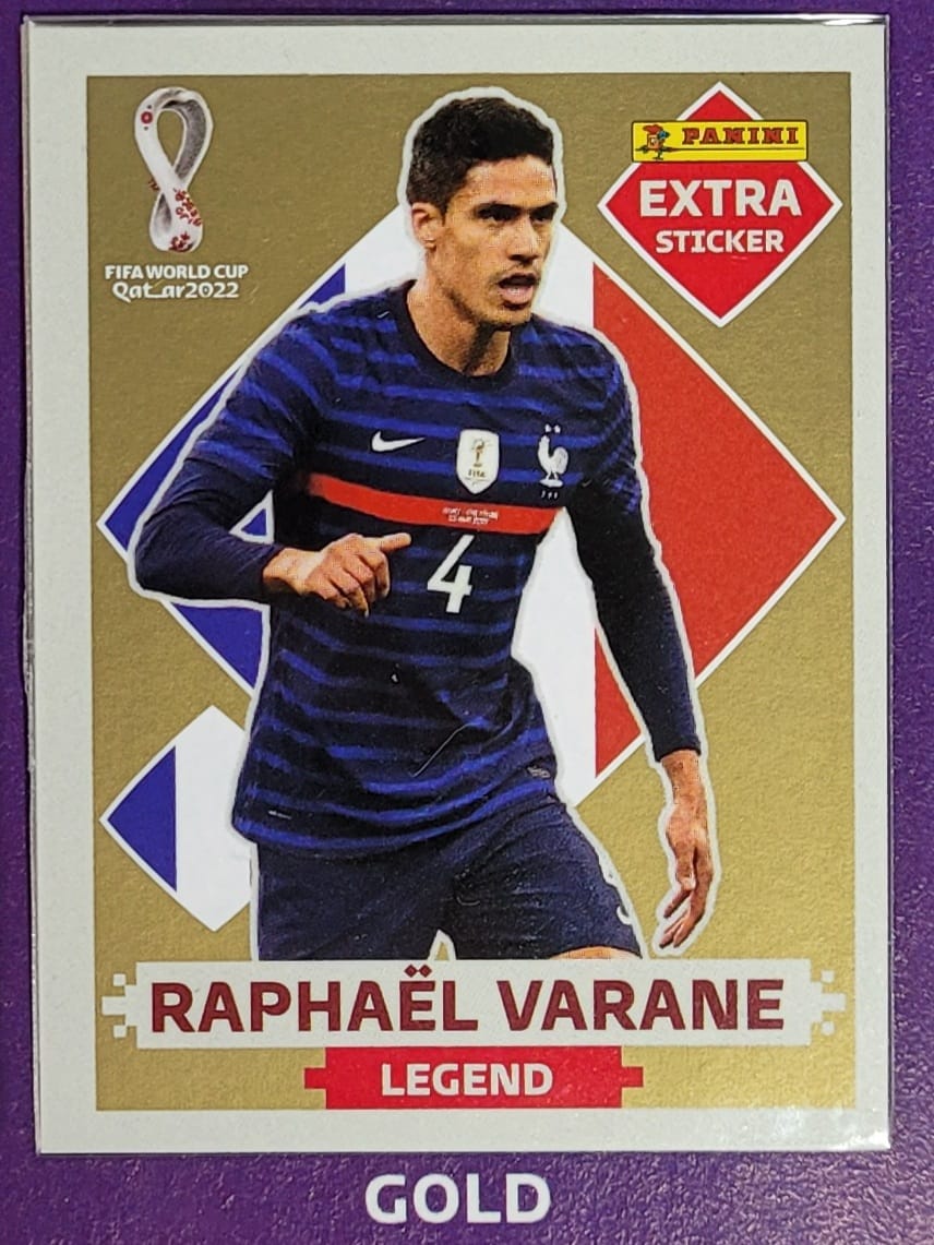 Extra Legend - Raphael Varane Ouro (Gold) - França - Original Panini - Copa do Mundo do Qatar 2022