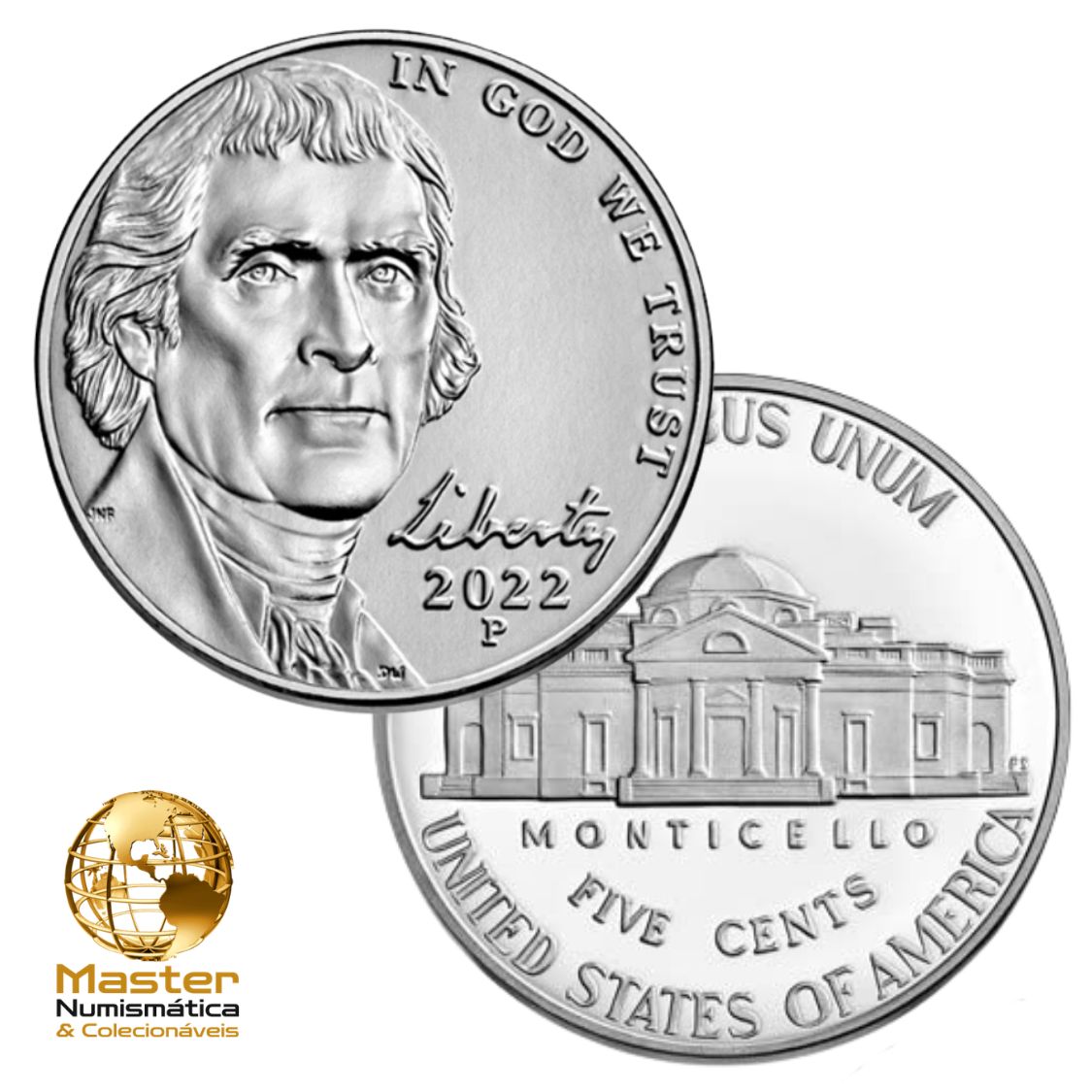 Estados Unidos - Moeda de Five Cents 2022 P - KM# 381 - Jefferson Nickel - Flor de Cunho