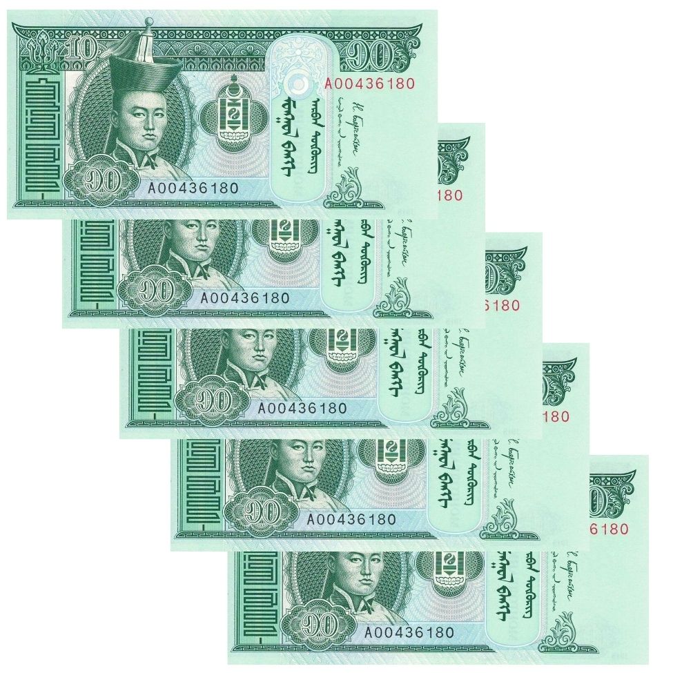 Mongolia - 5 Cédulas de 10 Togrog 2018 - P-62j - Sequência - Flor de Estampa