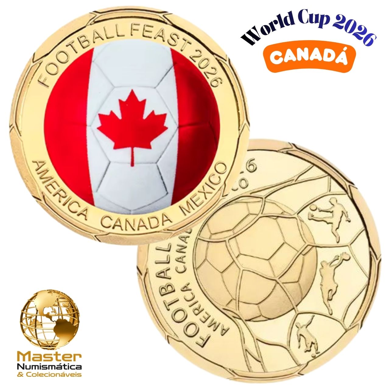 Lançamento - Moeda Colorida Copa do Mundo 2026 - Canadá - 40.0mm - Flor de Cunho - Na cápsula