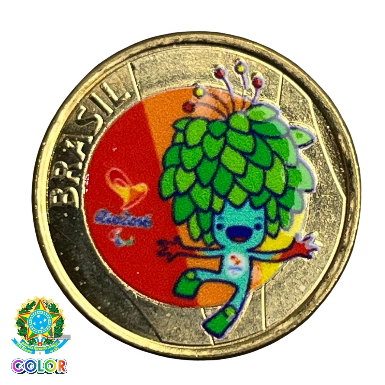 Colorida - Moeda 1 Real 2016 - Mascote Tom - V-622 - Colorizada - Flor de Cunho