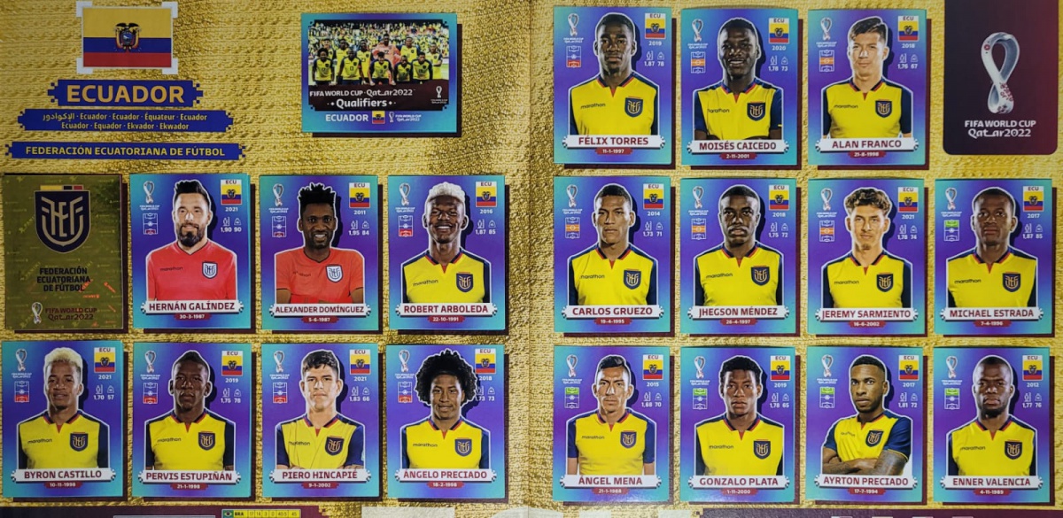 Seleção do Equador Completa - ECU1 a ECU20 - 20 Figurinhas - Grupo A - Copa do Qatar 2022 - Original Panini
