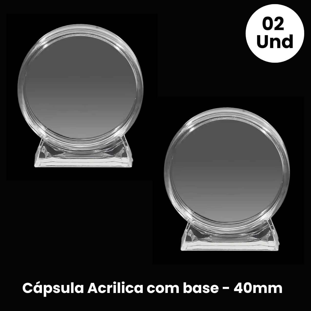 Promoção - 02 Capsulas Acrilica com base 40mm para Moedas e Medalhas