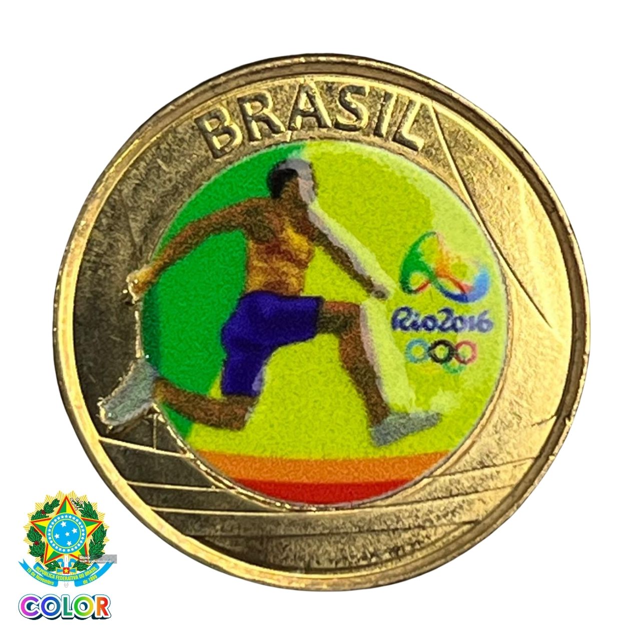 Colorida - Moeda 1 Real 2014 - Atletismo - V-607 - Colorizada - Flor de Cunho