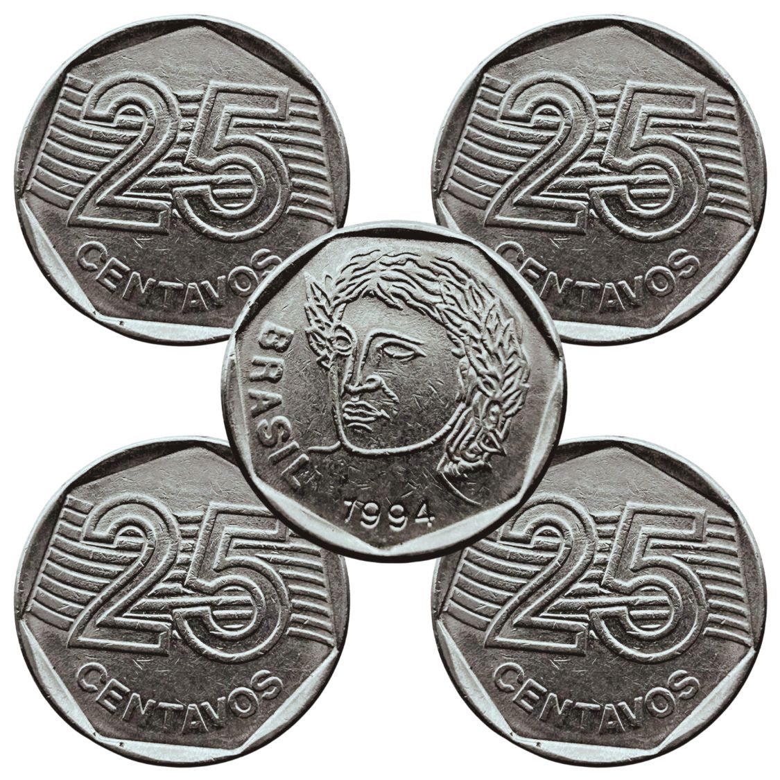 04 Moedas de 25 Centavos 1994 - V-450 - Circuladas - Aço Inoxidavel - 23.5mm - 4,78g