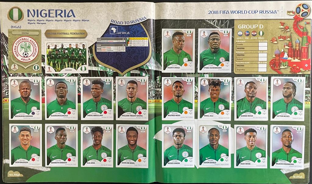 Seleção da Nigéria Completa (NGA) - Figurinhas 332 a 351 - Grupo D - Copa da Russia 2018 - Original Panini