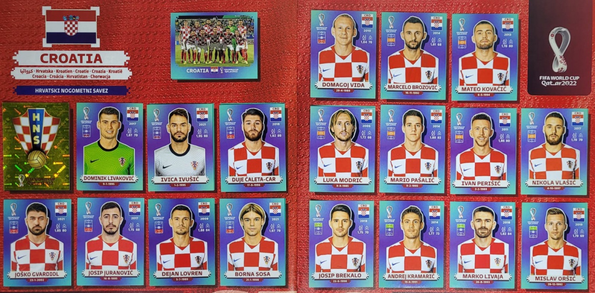 Seleção da Croácia Completa - CRO1 a CRO20 - 20 Figurinhas - Grupo F - Copa do Qatar 2022 - Original Panini