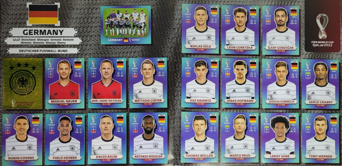 Seleção da Alemanha Completa - GER1 a GER20 - 20 Figurinhas - Grupo E - Copa do Qatar 2022 - Original Panini