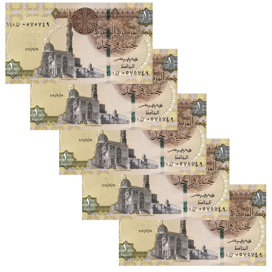 Egito - 5 Cédulas de 1 Pound 2021 - P-71h - Sequência - FE