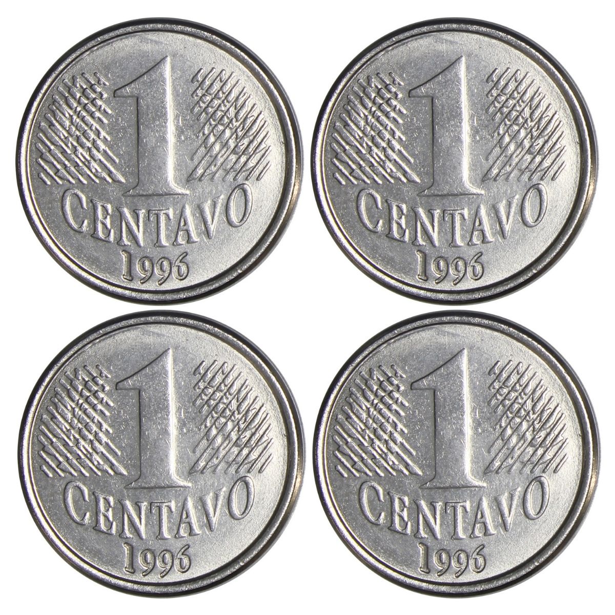 Promoção - 4 Moedas de 1 Centavo 1996 - V-440 - Aço Inox - 1ª Familia do Real - 20.0mm - 3.0g - Circuladas