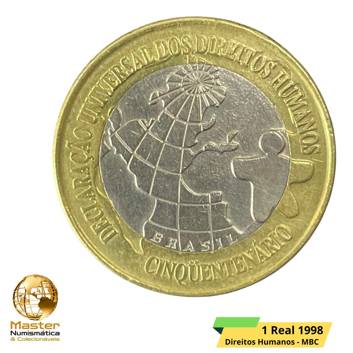 Moeda do Brasil - 1 Real 1998 DH - V-570 - Edição Comemorativa Aniversário de 50 Anos da Declaração dos Direitos Humanos - Circulada