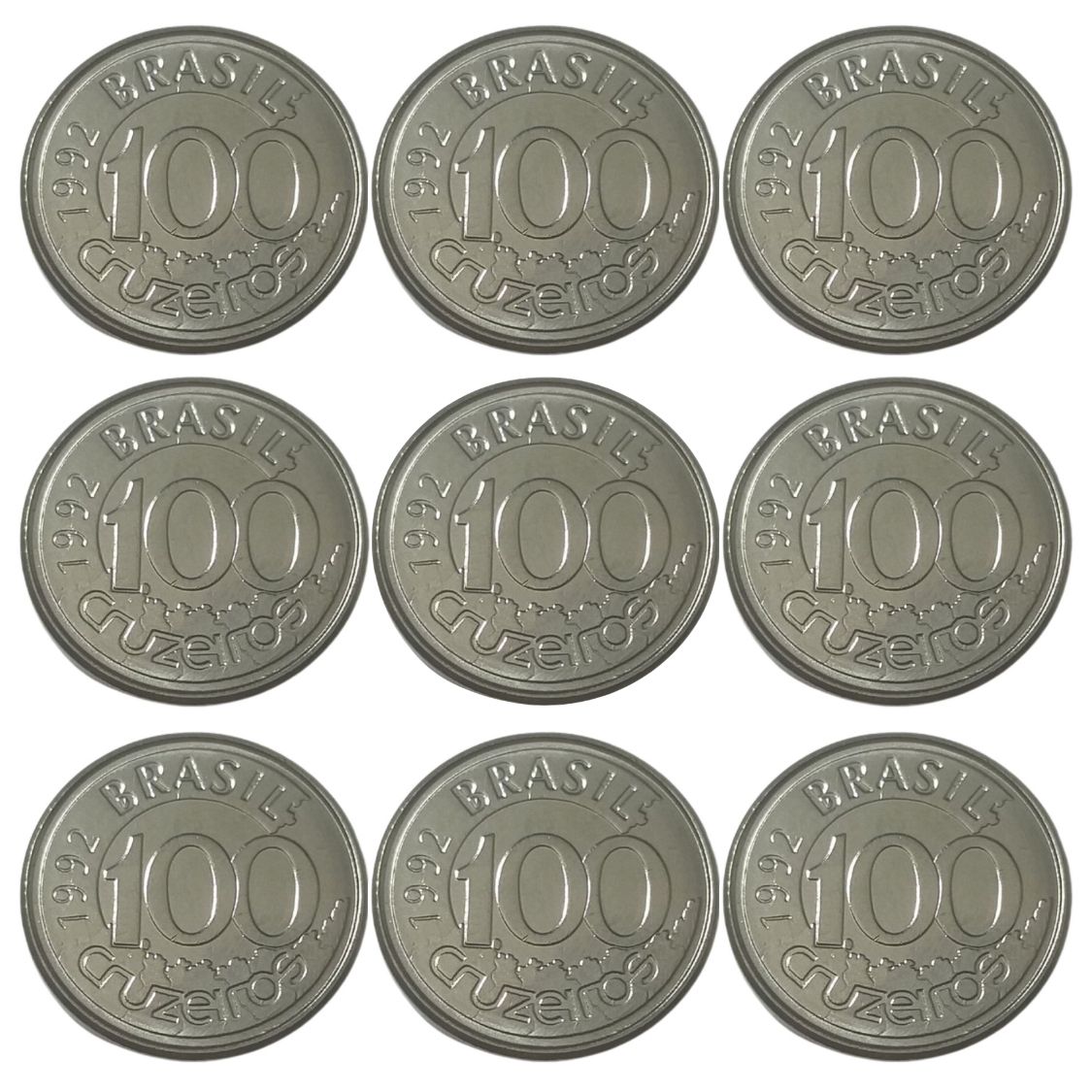 Promoção - 9 Moedas de 100 Cruzeiros 1992 - V-423 - Peixe Boi - Aço Inox - Flor de Cunho