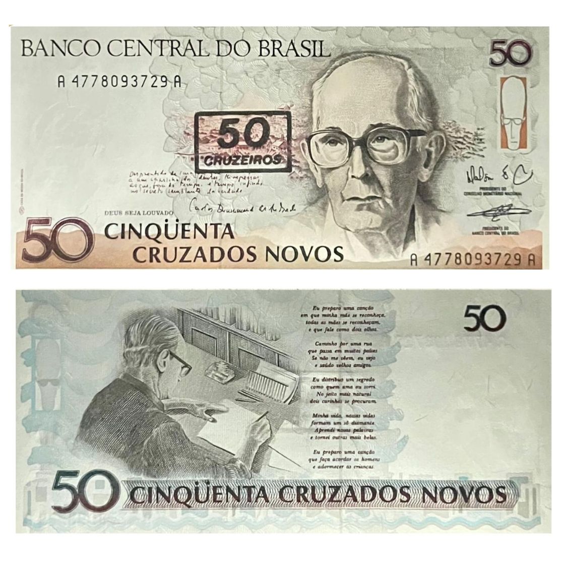 Brasil - Cédula de 50 Cruzeiros 1990 C-210 - Drummond - FE - Maison da Nobrega/Wadico Bucchi