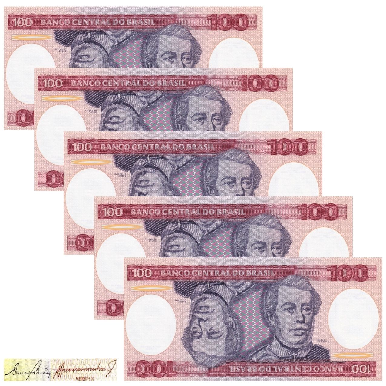 Brasil - 5 Cédulas de 100 Cruzeiros 1984 - Duque de Caxias - C-157 - Sequência - Série 8155 - Flor de Estampa