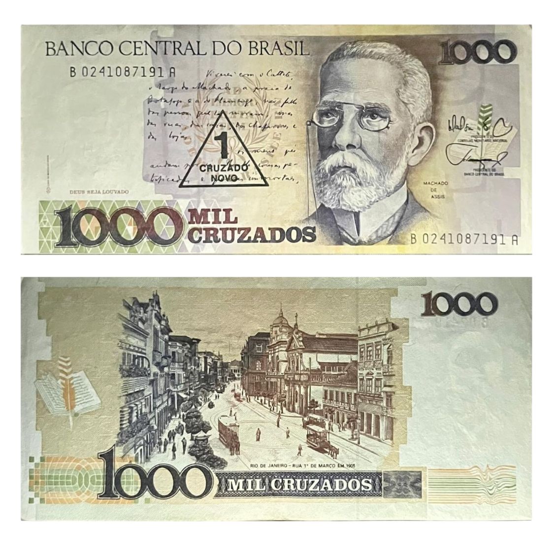 Brasil - Cédula de 1 Cruzado Novo 1989 C-198 - Machado de Assis - MBC - Carimbo sobre 1000 Cruzados - Maison da Nobrega/Elmo Camões.