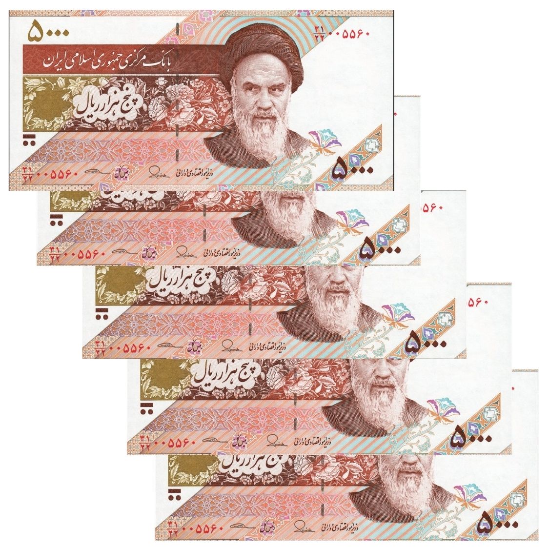 Irã - 5 Cédulas de 5.000 Rials 2015 - P-152b - Sequência - FE