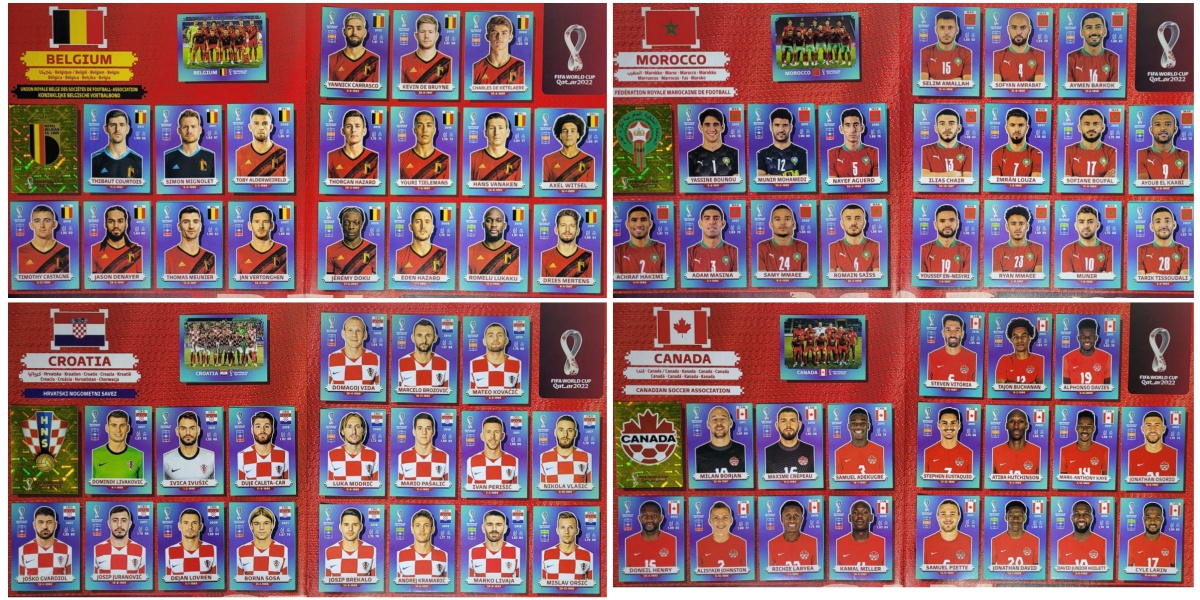 Kit com as 4 Seleções do Grupo F - Belgica - Canadá - Marrocos e Croácia - Todas as 80 Figurinhas - Grupo A - Copa do Qatar 2022 - Original Panini