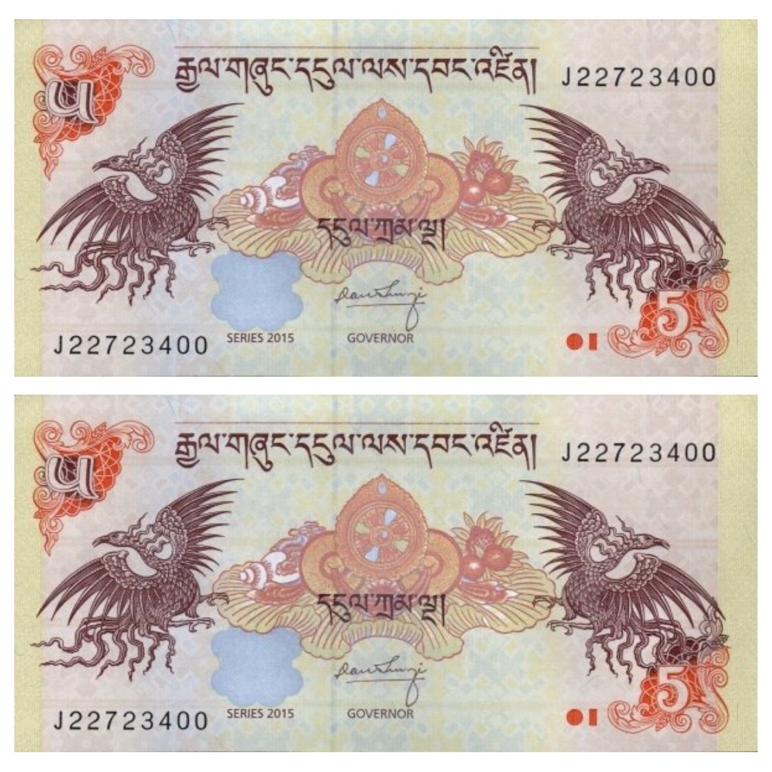 Butão - Cédula de 5 Ngultrum 2015 - P-28c- Flor de Estampa