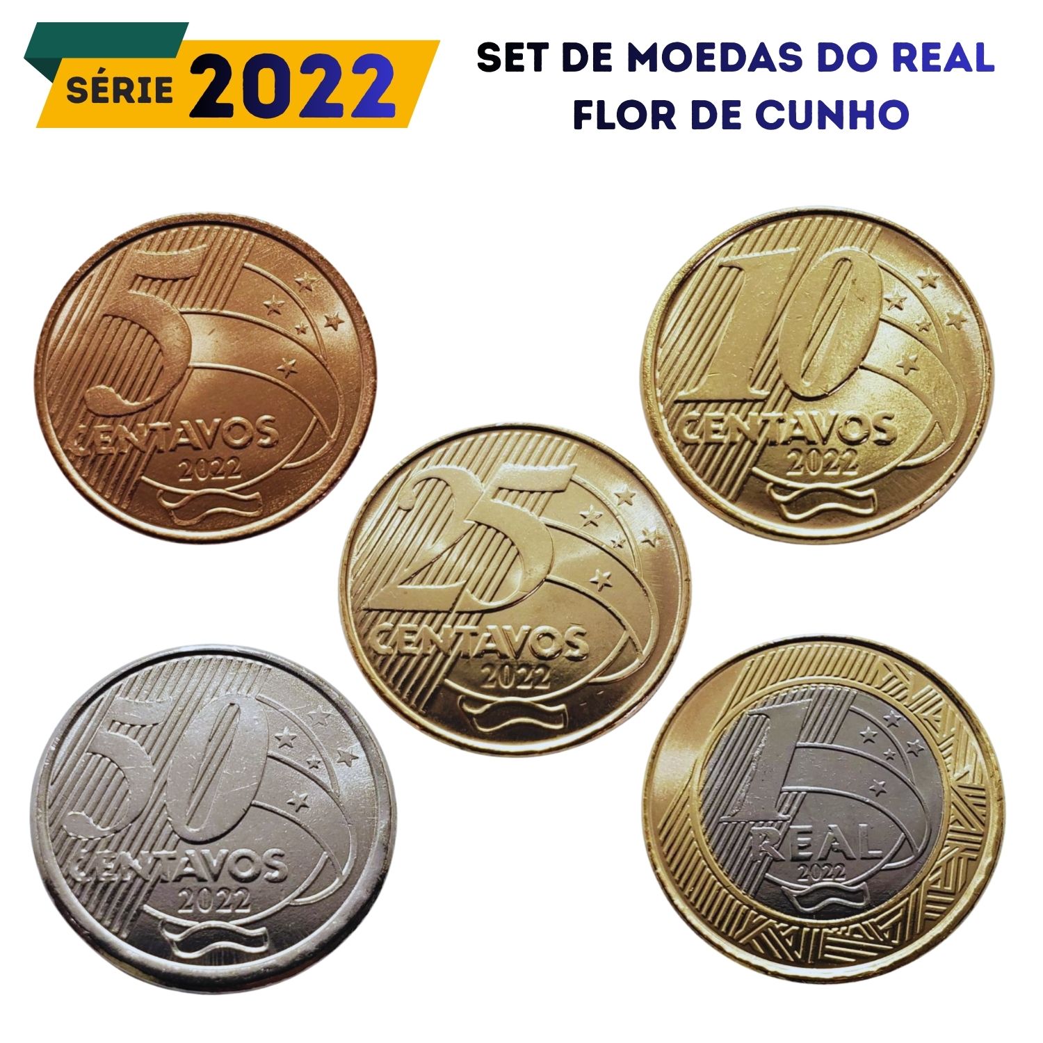 Set de moedas do Real 2022 - Flor de Cunho - Todos os valores de 5 Centavos a 1 Real