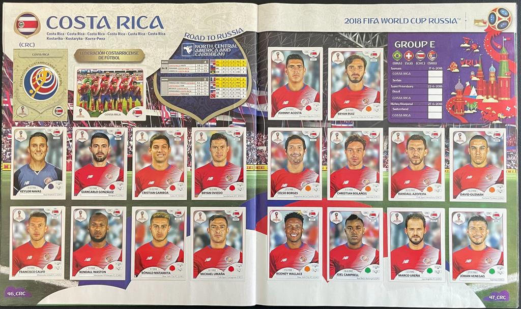 Seleção da Costa Rica Completa (CRC) - Figurinhas 392 a 411 - Grupo E - Copa da Russia 2018 - Original Panini